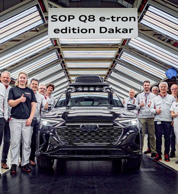 - En l'honneur de la victoire de l'Audi RS Q e-tron au Rallye Dakar, la production de l'Audi Q8 e-tron édition Dakar démarre aujourd'hui.